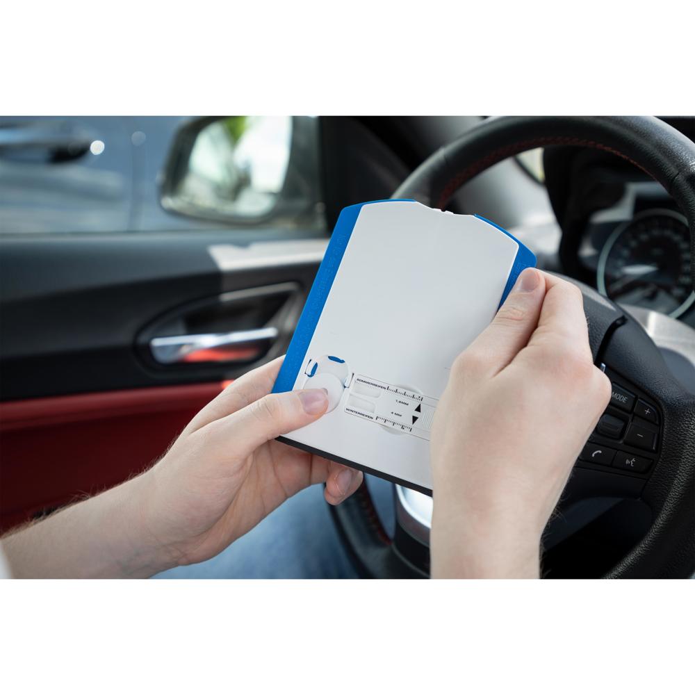 Kunststoff-Parkscheibe mit glatter Kratzkante, Kratzzacken und Wasserabstreifer. Auf der... mehr