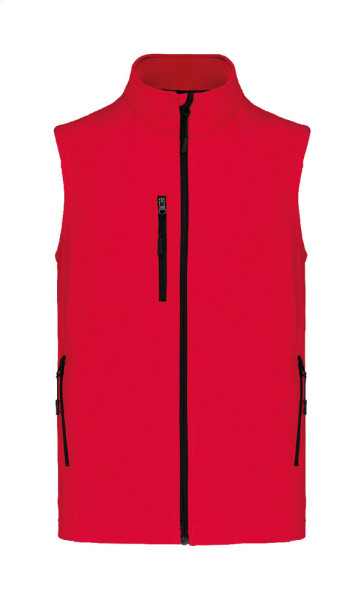 Softshell-Bodywarmer-Weste mit Reißverschluss – dreilagig, atmungsaktiv, wind- und wasserdicht – mit Reißverschluss an Brust- und Seitentaschen. Mit atmungsaktiver Zwischenschicht und innenliegendem Micro-Polar-Fleece. 95 % Polyester, 5 % Elasthan, 300 g/m². Marke: Kariban.