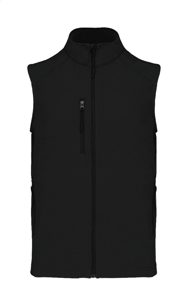 Softshell-Bodywarmer-Weste mit Reißverschluss – dreilagig, atmungsaktiv, wind- und wasserdicht – mit Reißverschluss an Brust- und Seitentaschen. Mit atmungsaktiver Zwischenschicht und innenliegendem Micro-Polar-Fleece. 95 % Polyester, 5 % Elasthan, 300 g/m². Marke: Kariban.