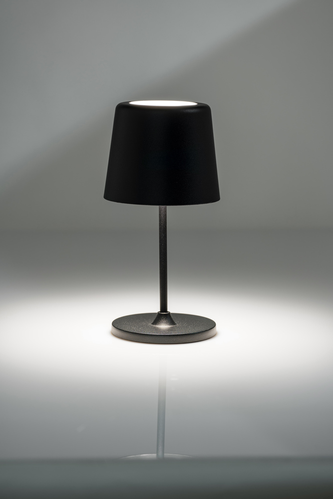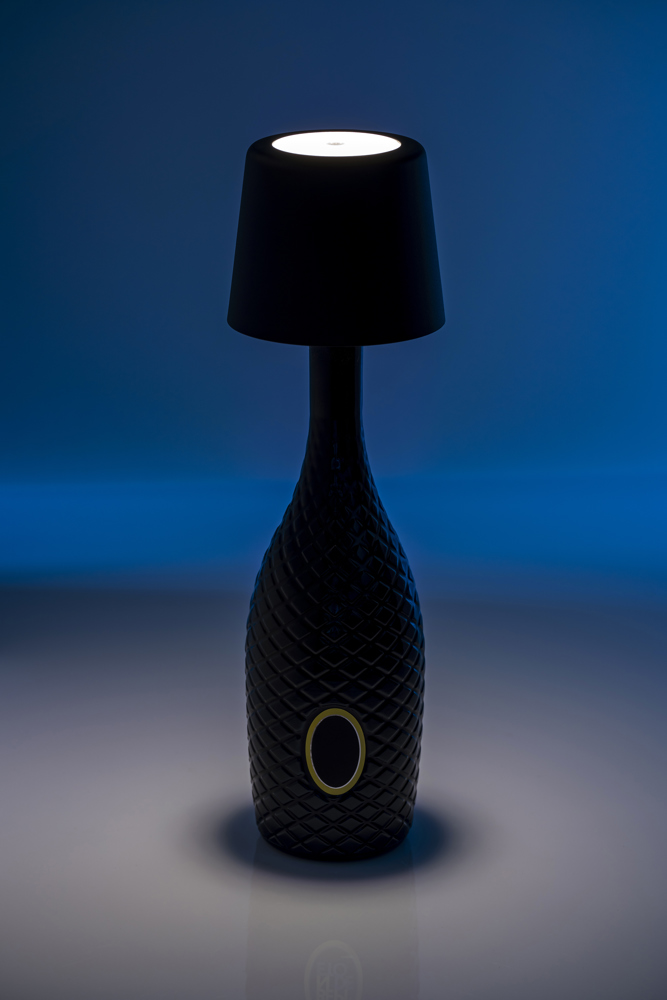 Dimmbare Tischleuchte mit teilbarem Mast IP44 Spritzwasserschutz für Innen und Außen 200 Lumen, 3W, 2600mAh Batterie Flaschenhalsadapter Material: Aluminium, Stahl, PC Gewicht: 595 g Maße: Ø 100 x 290 (bzw. 380) mm