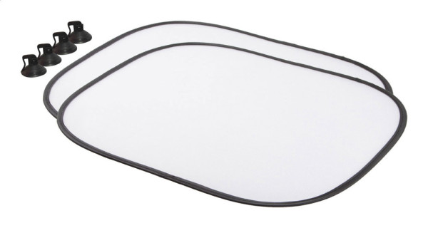 Faltbare Sonnenblenden (2 Stk.) für Seitenscheiben mit Sublimationsdruck, inkl. Saugnäpfen.